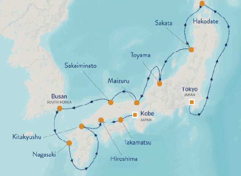 Viví el esplendor de la primavera japonesa en un crucero de 14 noches a bordo del Azamara Pursuit, durante la mágica temporada del sakura (floración del cerezo), uno de los momentos más emblemáticos y bellos del año en Japón. Esta travesía comienza con una noche en Tokio y recorre desde el norte en Hakodate hasta el sur en Nagasaki, incluyendo joyas menos transitadas como Sakata, Toyama, Maizuru y Sakaiminato